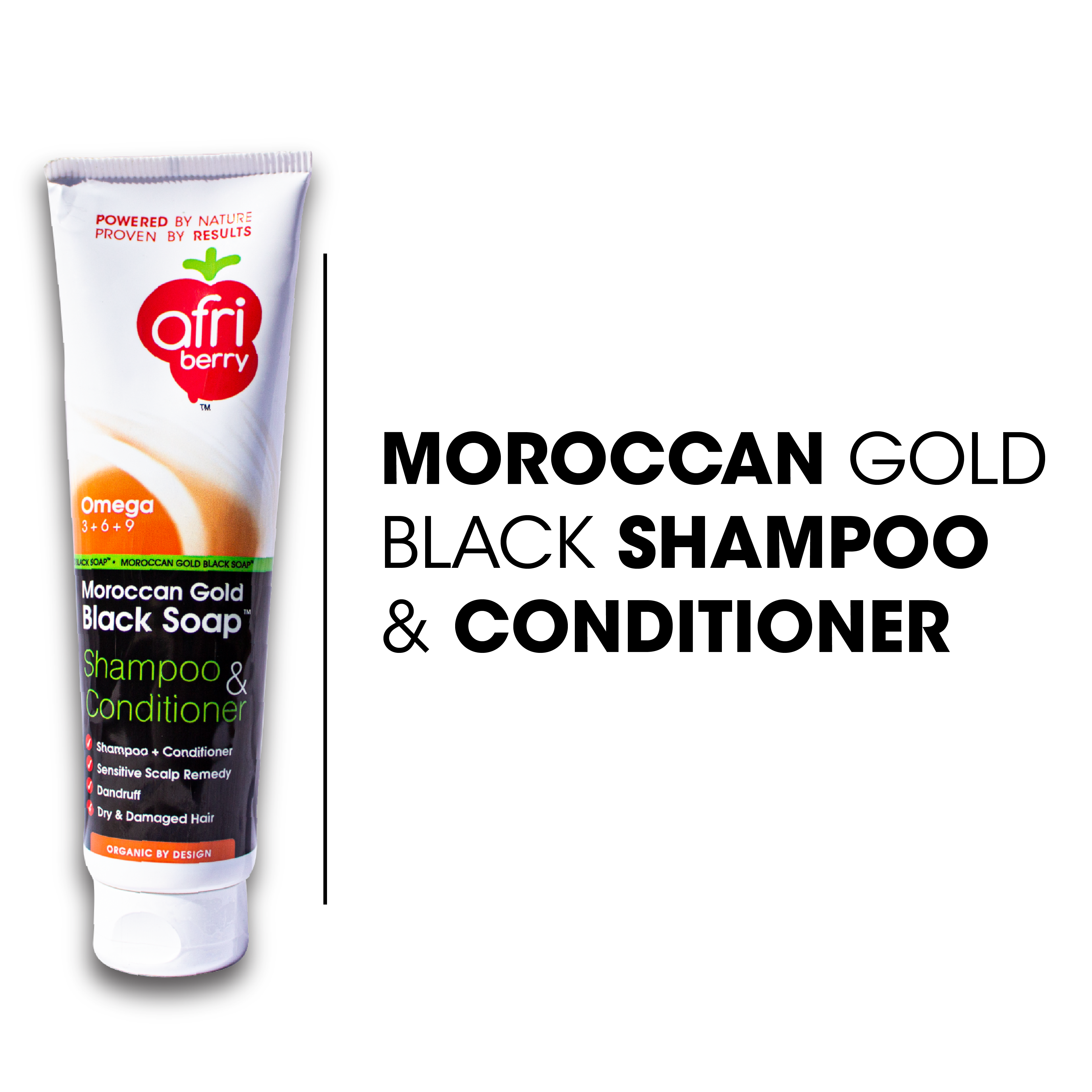 The benefits of the Moroccan Gold Black Soap is the two in one feature as it acts as a Conditioner and Shampoo that it fights itchy scalp, dandruff and hair growth.